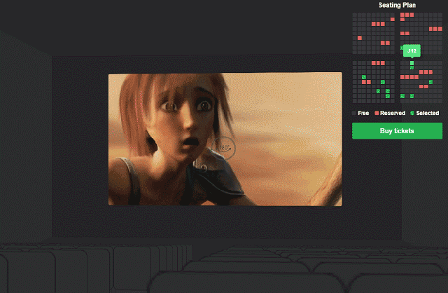 下面这张图是你在浏览器可以实现的交互效果,半个插件都不用装,就能体验身临其境的电影实时选座。