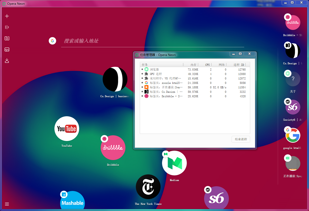 17 年 1 月,Opera(欧朋)推出概念版浏览器Neon,号称网络浏览的未来。在微软IE、谷歌Chrome浏览器二分天下的时候,Opera出此狂言自有原因。且看Neon两个基本特征——